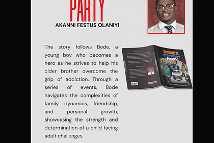 Bode’s Birthday Party by Akanni Festus Olaniyi is a compelling children’s novel that delves into the challenges of family, addiction, and resilience through the eyes of a young Nigerian bo...